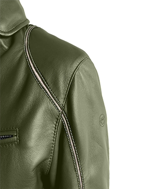 Die Jacke Tempelhof wird in einer völlig neuen Weise hergestellt. Dabei geht es um einen neuartigen Materialverbund: außen hauchdünnes Lammleder, innen edles und dazwischen eine dünne Hochleistungsisolation. In Fachkreisen nennt man diese Sandwichbauweise „bonden“. Dieses innovative Produkt ist eine Sensation an Tragegefühl. So leicht, dünn und kuschelig weich und dabei sehr warm hat es noch nie zuvor eine Lederjacke gegeben.